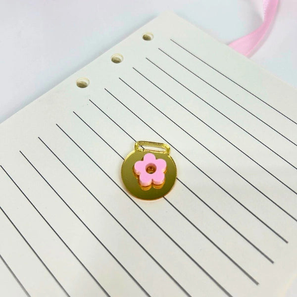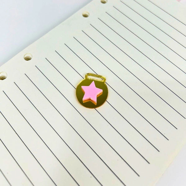 Diseñado con dos capasa de acrilico, es el accesorio ideal para marcar páginas con estilo. Perfecto para personalizar agendas, cuadernos o diarios, este colgante combina funcionalidad y diseño sofisticado.