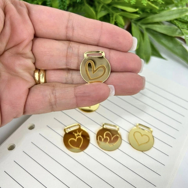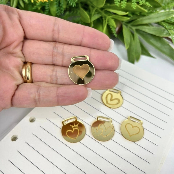Diseñado en acrilicos tipo espejo, es el accesorio ideal para marcar páginas con estilo. Perfecto para personalizar agendas, cuadernos o diarios, este colgante combina funcionalidad y diseño sofisticado.