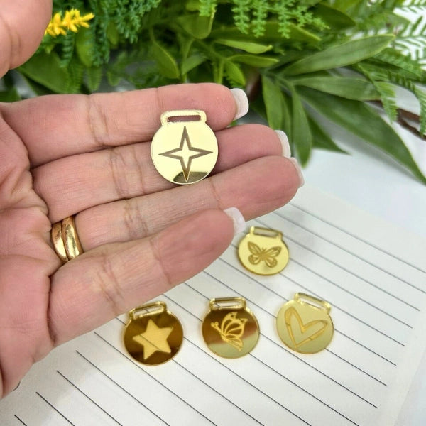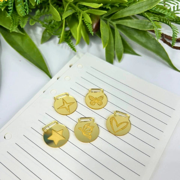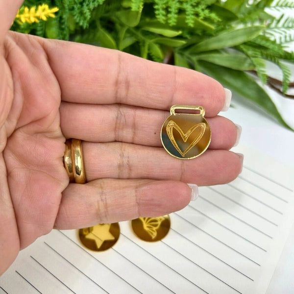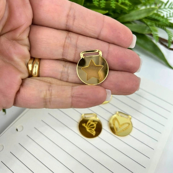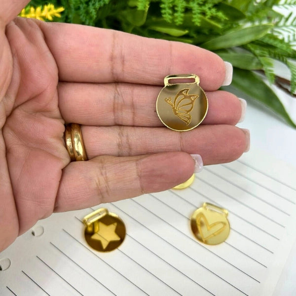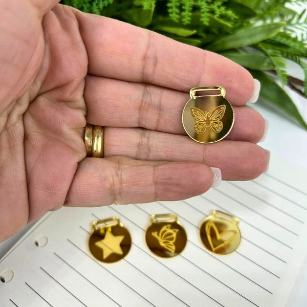 Diseñado en acrilicos tipo espejo, es el accesorio ideal para marcar páginas con estilo. Perfecto para personalizar agendas, cuadernos o diarios, este colgante combina funcionalidad y diseño sofisticado.